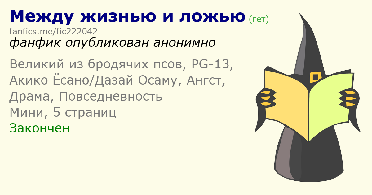 | ar neamhni Показать полностью Оу йес, дазаефилия, ударная доза концентрированной дазаефилии! Здравствуйте! 😊 Огромное спасибо Вам за такой теплый и вдохновляющий отзыв! Мне безумно приятно, что вы получили удовольствие от прочтения и оценили описание персонажей, будучи незнакомы с фандомам. Это хорошо, если что)) Вообще люблю, когда автор так подробно описывает персонажа с разных сторон глазами другого персонажа, сразу вызывает интерес и к персонажу, и к фэндому. Гет красивый, хоть пока и несбывшийся. Судя по всему, у Акико сильный характер, и если дойдет до пейринга, а не юста, то она не прогнётся и не потеряется. Спасибо, мне очень понравилось. Я, как автор, сейчас буквально прыгаю до потолка от счастья! 🤩 Очень рада, что вам понравился гет и что вы почувствовали силу характера Акико. Она действительно очень сильная. Порой даже чересчур 😅 Феминистка местами))) Но надеюсь, у меня получилось передать её стойкость и внутреннюю борьбу. Как и положительные черты характера Дазая. Спасибо еще раз за то, что поделились своими впечатлениями! Буду рада видеть Вас снова! 😉 | |